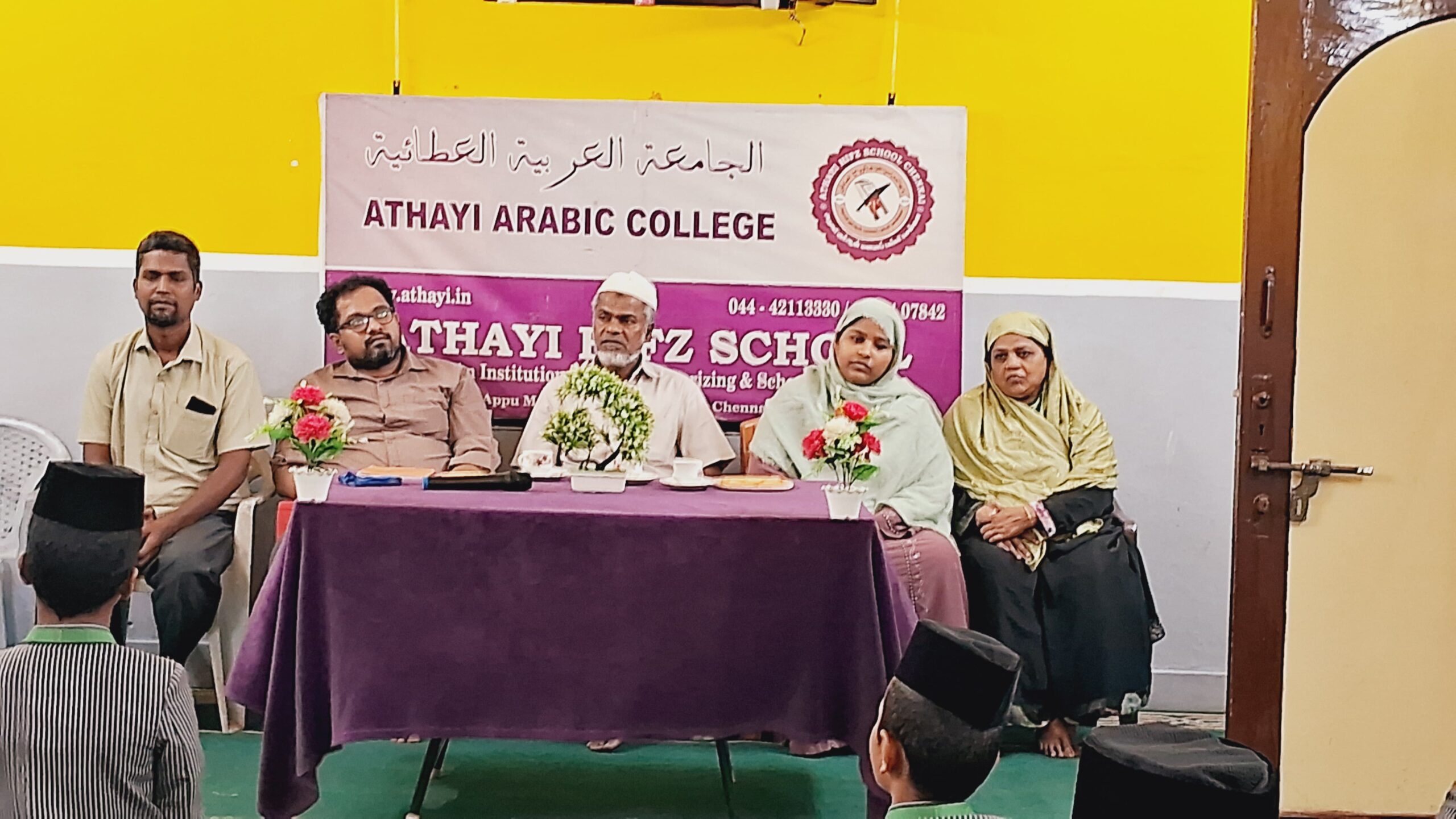 Our Athayi Hifz School Mannady.. Provides regular school education to children along with Quran education. Here, more than 100 Hafils have completed their education and graduated. This Athayi Hifz School guides them in a quality manner and guides them in the right direction to excel even after completing their studies. The mission of this group is to memorize the entire Quran in three years and recite it in one sitting and graduate. Similarly, this Hifz School has been established in many places in Tamil Nadu…